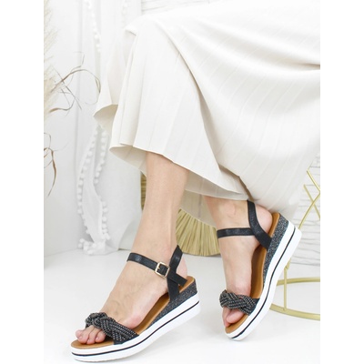 DoAndBe Černé sandály na klínku JJ-10B
