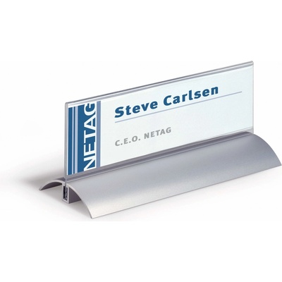 Oboustranně čitelná stolní jmenovka z pevného PVC, vhodná na konference, recepční pulty, ceny zboží a popis produktů. Dodávána s vyměnitelnou prázdnou kartou. Větší balení 25 ks. Rozměry: >61x150 mm Výrobce: Durable