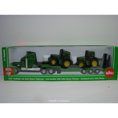 Kovový model tahače s návěsem a dvěma traktory značky John Deere v měřítku 1:87 od značky Siku. Model obsahuje sklopné nájezdy na podvalník. Gumové pneumatiky. Krásný lak s...