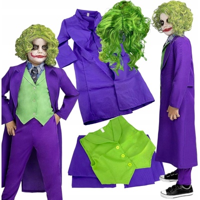 KOSTÝM ZLÝ JOKER 140 Sada obsahuje: - bunda - Kalhoty - uvázat Kostým je v barvě pruhů v odstínech fialové a černé. Sako s našitou zelenou vestou, zapínanou vpředu na...