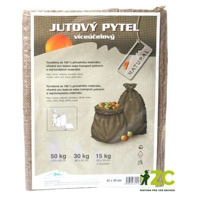 Jutové pytle jsou vhodné pro skladování obilí nebo brambor a další zeleniny. Používají se také na skladování písku nebo suti. Součástí tohoto pytle je také jutový provázek pro...