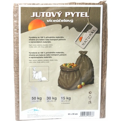 Jutový pytel je vhodný obal pro sklizeň obilí nebo zeleniny. Zároveň je vhodný pro skladování písku, suti a dalších materiálů, často se používá jako pytel na chmel. Orientační...