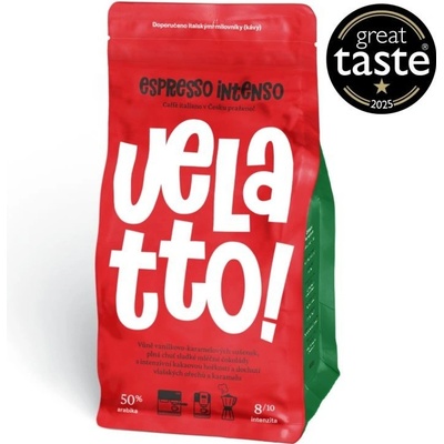 Velatto Espresso Intenso má hutné tělo a sladkou chuť mléčné čokolády s výraznou kakaovou hořkostí. Ideální pro espresso i mléčné nápoje, s bohatou cremou a jemnou dochutí...