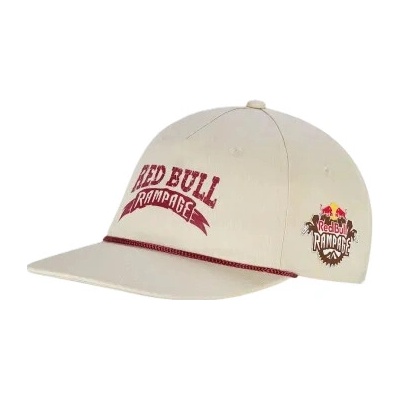 Béžová kšiltovka Red Bull Rampage Trail s nápisem na přední korunce a logem po straně. Vyrobena z 100% bavlny, s plochým kšiltem a nastavitelnou sponou pro pohodlné nošení.