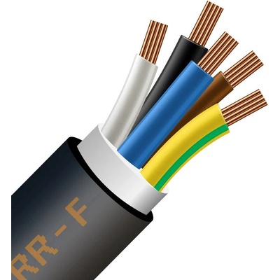 pro pohyblivé přívody lehce namáhané i ve vlhkém a mokrém prostředí, počet žil 4, průřez vodiče 1,5 mm2, materiál jádra měď Cu, barva vodičů zeleno-žlutá, hnědá, černá, šedá