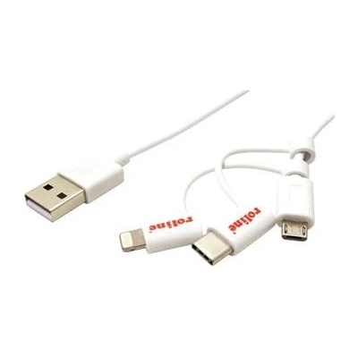 USB kabel pro připojení zařízení s konektorem micro USB, nebo Apple Lightning, nebo USB C.; Konektory: USB A(M) - microUSB B(M) + redukce microUSB B(F) - Apple Lightning(M) +...