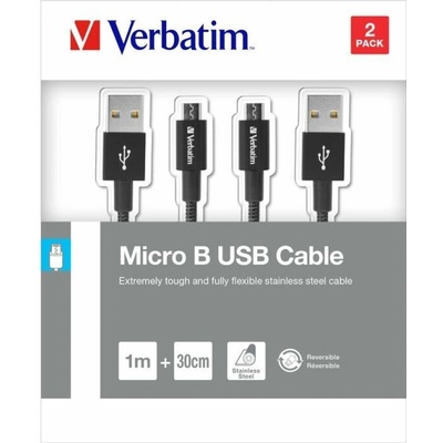 Kabel USB (2.0), USB A M- USB B Micro M, 1m, reversible, černý, Verbatim * Extrémně odolný a zcela ohebný kabel z nerezové oceli * Kompatibilní s chytrými telefony a tablety s...