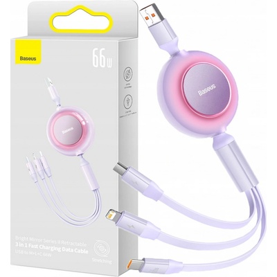 Baseus Bright Mirror 2 zatahovací kabel 3 v 1 USB typ A - micro USB + Lightning + USB typ C 66W 1,1 m fialový (CAMJ010105) Pokud máte několik zařízení a hledáte optimální...