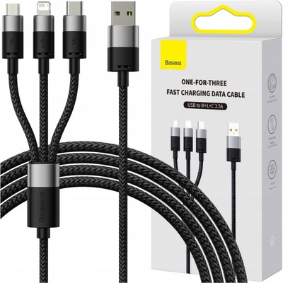 Kabel USB 3v1 Baseus StarSpeed, USB-C + micro USB + Lightning, 3,5 A, 1,2 m (černý) Jeden kabel, mnoho možností. Kabel Baseus StarSpeed umožňuje nabíjet až 3 zařízení...