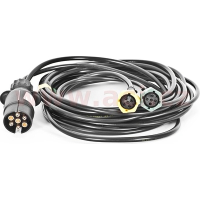 7 pin zástrčka 2x 5 pinový konektor pro zadní světla pro mlhovku na levo délka 4,55 m Jednoduchá kompletní kabeláž bez zbytečných spojů. Používá se na malých přívěsech,...
