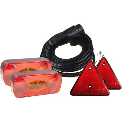 SET světel MD-36 + elektro kabeláž k vleku 7pin/5m s plochým konektory + odrazka trojúhelníková Světla na přívěsný vozík obsahující svazek elektroinstalace se světly MD-36...