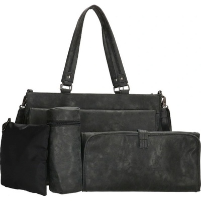 Černý 4-set přebalovací kabelka ke kočárku „Family“ s taškami, kapsami, přihrádkou na láhev a úchyty na kočárek + 2 dárky a poštovné ZDARMA! Materiál: PU kůže, podšitý vnitřek...