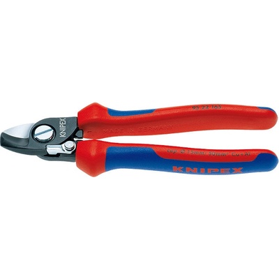 Kabelové nůžky KNIPEX 95 11 165 s leštěnou hlavou a plastovými návleky umožňují přesné stříhání měděných a hliníkových kabelů do průměru 15 mm. Ergonomické rukojeti zajišťují...