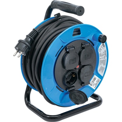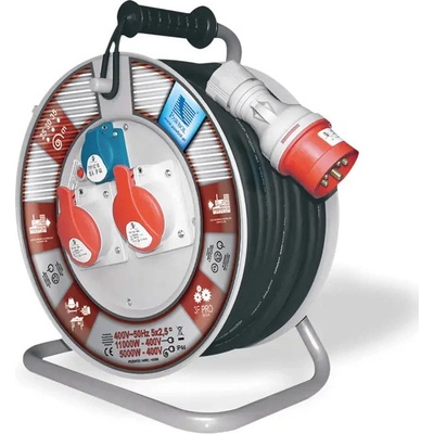 - délka kabelu: 30m - typ drátu: 5 drátů 2,5mm2 - kabel: guma (H05RR) - typ zásuvky: 2x 5p (32A/16A, napětí: 400V) - počet zásuvek: 1 x 250V - průměr bubnu: 340 mm - stupeň...