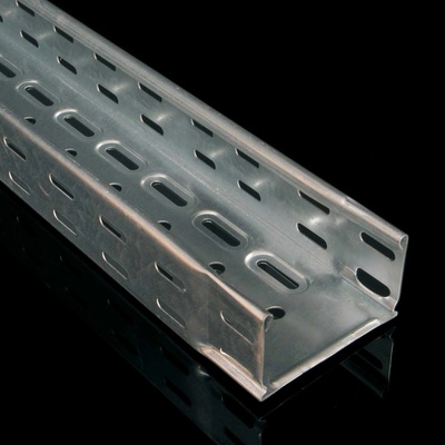 Kabelový žlab Mars s integrovanou spojkou NKZI 50x250 z plechu tloušťky 1,00mm v povrchové úpravě sendzimir, děrovaný, opatřený embosy pro zvýšení pevnosti a tuhosti.
