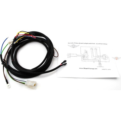 Kompletní kabelový svazek ve špičkové kvalitě, vyrobený v Německu, vhodný pro Hercules Prima 5S s kokpitem a shodné Moped Mofa s 6 Volt / 19/10 Watt elektrosoustavou. Včetně...