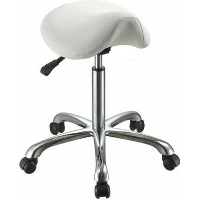Sedlová kosmetická židle s opěradlem BeautyOne- Vlastnosti Nastavitelná výška: 45-60 cm Průměr sedadla: 40 cm Barva čalounění: bílá / černá Hmotnost: 7 kg Nosnost: 100kg...