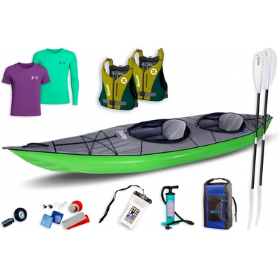 Výhodný set obsahuje - Kánoe: Nafukovací kajak kajak SOLAR - Pádla: 2x pádlo TNP Wolferine 706.2 - Pumpa: Bravo 4L s manometrem - Vodotěsný vak - Příslušenství: Sada...
