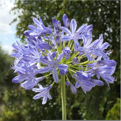 – známý též jako „lilie nilská“. Barva je šeříkově fialová, výška 80 cm.