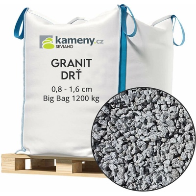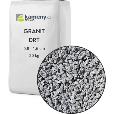 Granit je okrasná drť z přírodního kamene. Velikost frakce je 0,8 - 1,6 cm. Využívá se převážně na zahradách k obsypání rostlin, keřů, stromů, ploch kolem bazénů nebo na hroby....