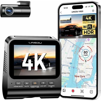 Automobilová kamera LINGDU V620 4K+1080P GPS WiFi + 64GB karta Kompaktní automobilová LINGDU V620 zaznamenává obraz ve 4K vpředu a 1080p vzadu a zajišťuje tak výjimečnou...