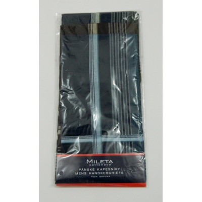 Pánské bavlněné kapesníky od českého výrobce Mileta. Balené v sáčku kde je poskládáno šest kusů kapesníků, vždy po dvou barvách. Rozměr pánských kapesníků je cca 40x40...
