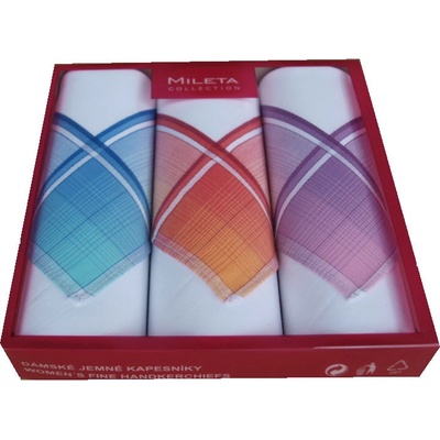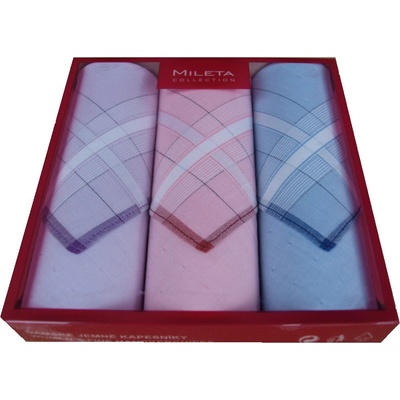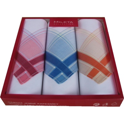Dámský kapesník o rozměru 31x31 cm ze 100% bavlny od českého výrobce MILETA a.s. . Balení obsahuje kapesníky ve třech barvách. Rozměr : 31 x 31 cm Materiál : 100% bavlna...