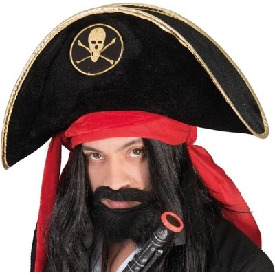 Karneval doplněk - černý sametový klobouk s červenou stuhou a zlatou lebkou a lemováním Vhodný pro děti i dospělé Skvěle doplní maškarní kostým pirát nebo pirátka ESPA - Funny...