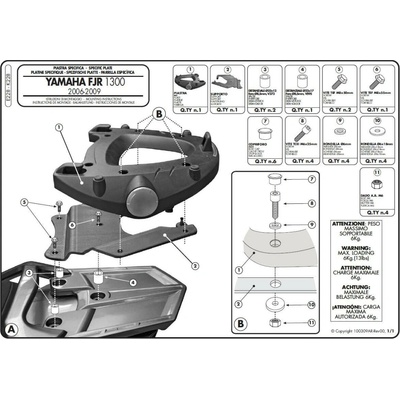 Montážní sada pro top case vč. plotny MONOKEY. Pozor - Nutno vrtat do kapotáže!