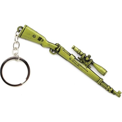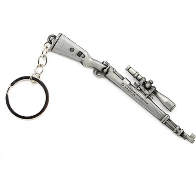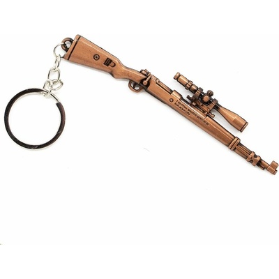 Kovový přívěšek, včetně kroužku na klíče. Délka pušky - cca 11,6 cm.