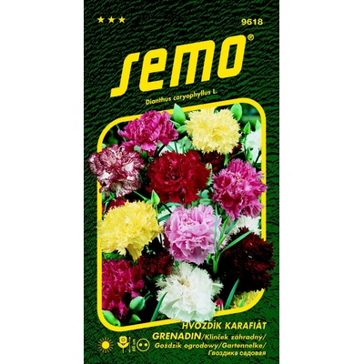 Dvouleté zahradní karafiáty pro záhonovou výsadbu, směs barev, výška 60 cm. Vyžadují živnou, propustnou půdu s dostatkem vápníku a slunnou polohu.
