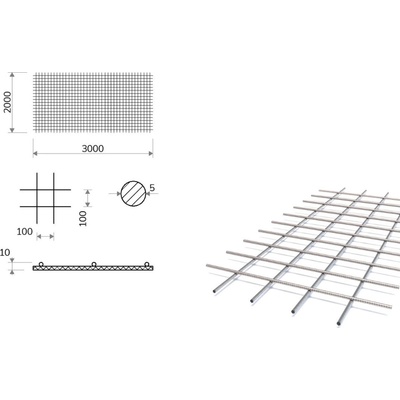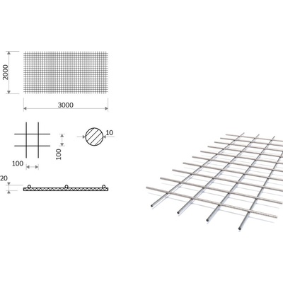Typ----KH30 Rozteč příčných drátů----100 mm Rozteč podélných drátů-------100 mm Délka------3 m Šířka-----2,00 m Průměr podélného drátu-----8,0 mm Průměr příčného drátu-----8,0...