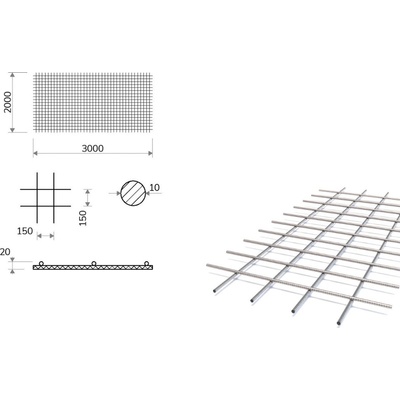 Kari síť s okem 150/150 mm, 2x3 m, průměr 10 mm je svařovaná síť jakosti B500B, která je vyráběná z kruhové tyče s žebírky s velikostí ok 150/150 mm a průměrem drátu 10 mm. Tato...