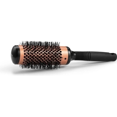 Kulatý kovový foukací kartáč na vlasy. Průměr 33 mm. Dodává vlasům objem, k vytváření vln. Jeho přírodní štětiny umožňují cirkulaci vzduchu při fénování vlasů, hodí se i pro...