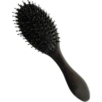 Oválný polštářkový kartáč na rozčesávaní vlasů s kombinací kančích a nylonových štětin zakončeními kuličkami. Vyznačuje se měkkým polštářkem a velmi unikátním typem štětin, které snižují poškození jemných vlasů. Šetrný k jemným vlasům. Lehký kartáč v černé barvě.