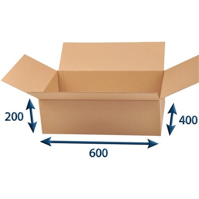 Kartonová krabice z 5-vrstvé lepenky na zásilky o hmotnosti do 20 kg. Spoje na krabici jsou lepené. Krabice jsou rozložené, před použitím je třeba složit a klopy podlepit...