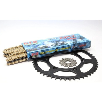 Kompletní řetězová sada D.I.D, obsahující řetěz DID 525VX3 X-ring - 110 článků, STEEL (kovová) barva, řetězovou nýtovací nebo rozebíratelnou spojku, kalené přední kolečko...