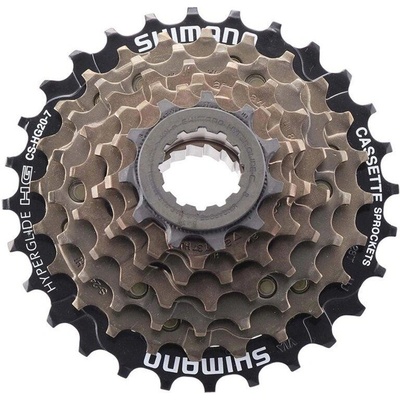 7mi rychlostní kazeta SHIMANO v základním provedení • 7-mi rychlostní kazeta SHIMANO s přesnými a neměnnými vlastnostmi řazení• profily zubů HG, technologie HYPERGLIDE• ocelové pastorky• antikorozní povrchová úprava hnědá/černá• upevnění kazety na ořech náboje maticí...
