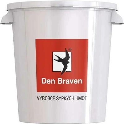 Pro míchání sypkých pytlovaných hmot značky Den Braven s vodou. Na kbelíku je potisk s různými pytlovanými hmotami Den Braven a s vyznačenou spotřebou vody pro míchání...