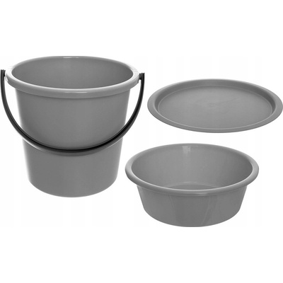 Tato sada obsahuje vědro s uchem, dřez a víko, které pasuje jak na dřez, tak na vědro. Je to praktický pomocník do domácnosti. Díky rovnému víku lze na vědro pokládat další...