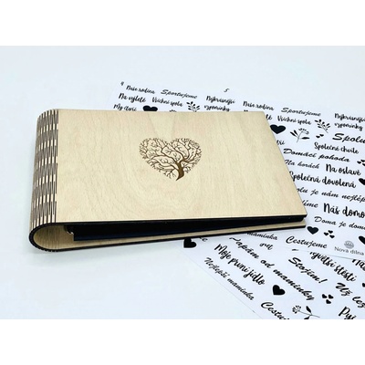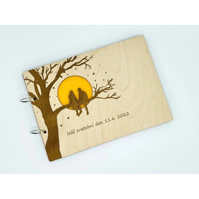 Dřevěné fotoalbum s pevnou dřevěnou vazbou. Album se ideálně hodí jako svatební kniha hostů na Váš svatební den, fotokniha pro miminko, originální fotoalbum z dovolené, nebo...