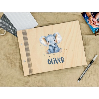 Fotokniha s ilustrovaným slonem na první fotky miminka Dřevěné fotoalbum na první fotky vašeho děťátka, nebo na jeho první roky. Uchovejte ty nejdůležitější okamžiky z života...