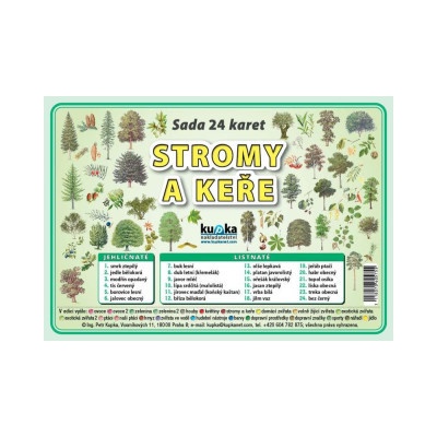 Univerzální sada ilustrací našich nejběžnějších stromů a keřů. Sada obsahuje 24 laminovaných karet velikosti 10 x 7 cm (4 obrázky na kartě formátu A5 určené k...