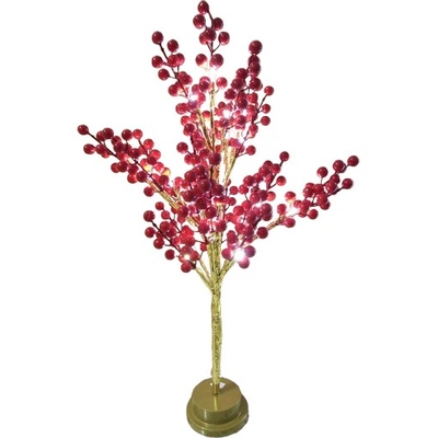 Dekorační lampa ve tvaru keře s bohatými větvemi obsypanými červenými bobulemi Dekorační lampa ve tvaru keře s bohatými větvemi obsypanými červenými bobulemi. Větve jsou...