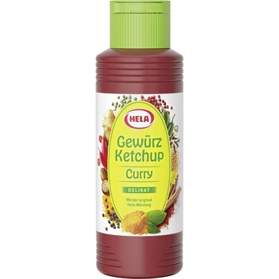 Hela Curry kořeněný delikátní kečup, 930g Velice oblíbený německý curry kečup - delikátní. složení: rajčatová šťáva, cukr, dextróza, jedlá sůl, kari (HOŘČIČNÁ MOUČKA, pepř,...