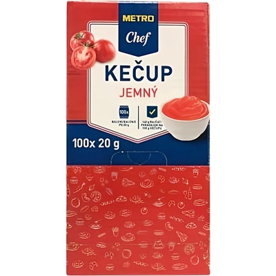 Rajčata (148g na 100g kečupu), ocet kvasný lihový, cukr, jedlá sůl, extrakty koření a bylin (obsahuje celer), koření Na 100g Energetická hodnota 435kj/102kcal Tuky 0,1 g z...