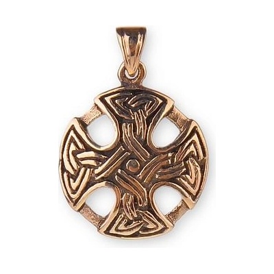 Bronzový přívěsek ve tvaru keltského kříže, průměr šperku je cca 1,7 cm.