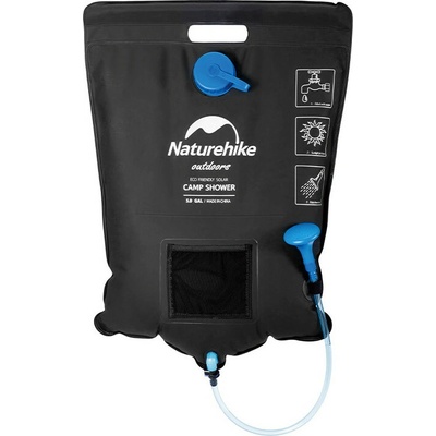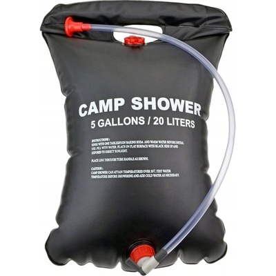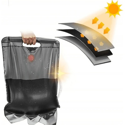 Pevný vak o objemu 20l a hadicí se sprchou sloužící jako přenosná kempingová solární sprcha. Vak jednoduše naplníte vodou, necháte ho vystavený slunečnímu záření a zhruba za 2...