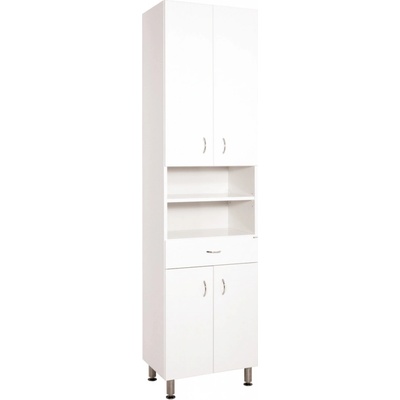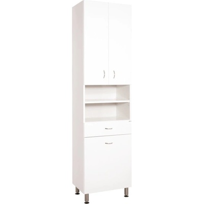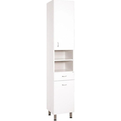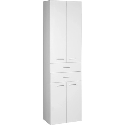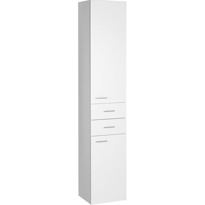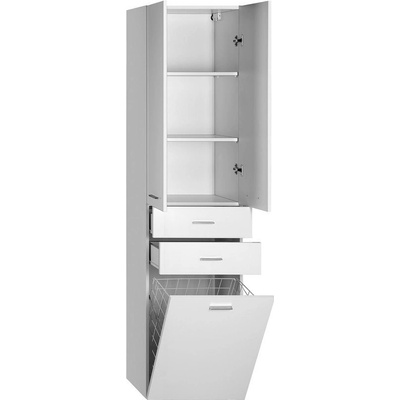 Praktická doplňková vysoká skříňka do koupelny s dostatkem úložného prostoru. Bílé lakované boky i čela, lesk. Součástí dodávky jsou úchytky a nerezové nožičky 10 cm, výškově...