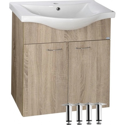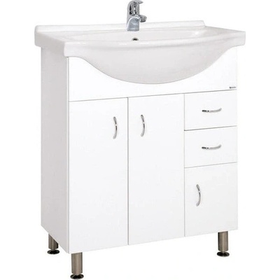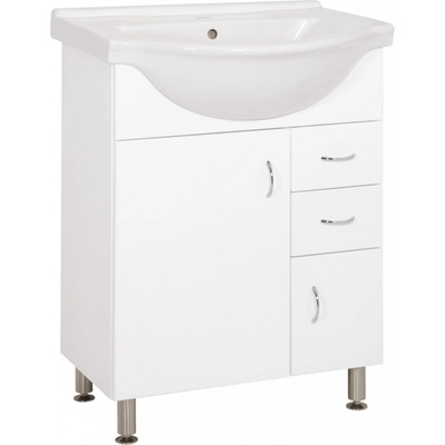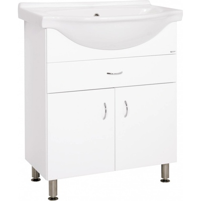 Skříňka do koupelny s keramickým umyvadlem. Lakované boky i čelo, bílá lesk. Součástí dodávky je umyvadlo, úchytky a nerezové nožičky 10 cm vysoké s možností drobné výškové...